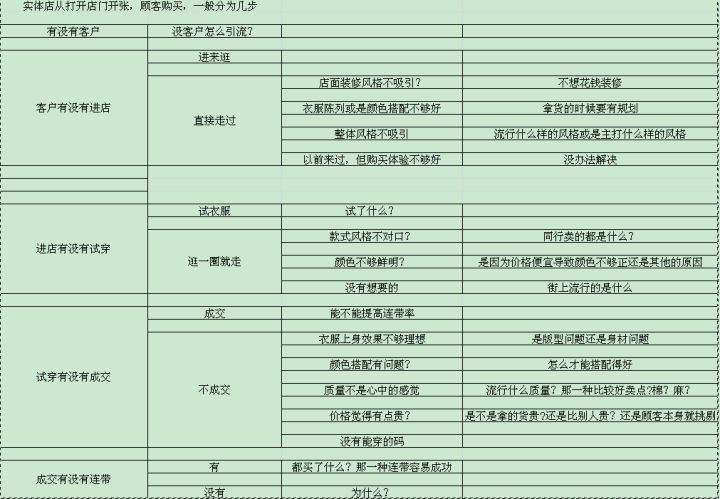 亏钱,是从那里亏?一个店的支出无非是房租水电人工和每个月的饮茶费。如果是有钱赚,但支出成本太高,那么找房东谈谈。估计是没得谈。那么,回到题目来。 没钱赚是因为什么?成交量少。那么是试穿衣服的人多吗?如果试穿衣服的人多,买的少,那么是什么问题?是质量不是顾客预期,还是款式版型穿上身给顾客带来的感觉没有在模特身上那么有感觉?又或是价格觉得接受不了? 就这样一个问题一个问题分析