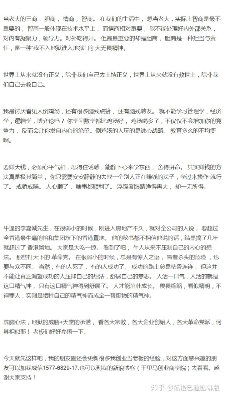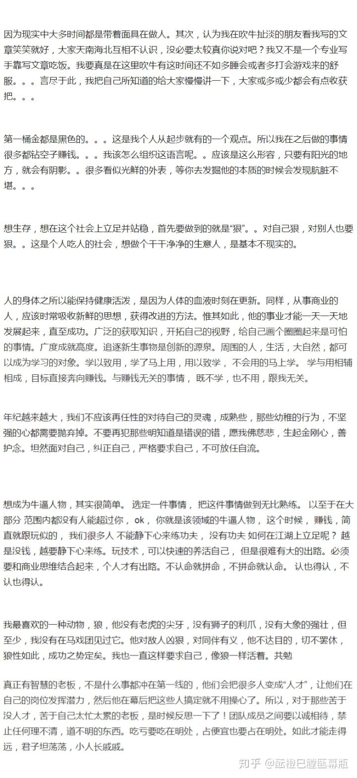 大部分小老板只是为自己工作而已,招聘过来的员工只能算是帮手,如果自己不在公司工作,那么公司就很难保持持续盈利。而真正赚大钱的老板是就算自己离开了企业,企业也会盈利,甚至盈利能力更强。因为真正的老板建立一个系统,让别人为自己工作。真正的老板要习惯雇佣比自己厉害的人为到自己的企业工作,比如柳传志雇佣杨元庆,甚至最牛逼的企业家是雇佣投资人的,比如马云雇佣蔡崇信。我以前的思想比较狭隘ài,总是看不起普通员工。看不起项目经理,小老板。今天,我知道这种思想是错误的,一个真正的老板,必须要会雇佣所有层次的人,就是能让普通员工,小老板,项目经理,企业家,投资人,都为你服务,为你工作。你必须要爱扫地的大妈,前台,你的项目经理,CEO,你的银行服务人员,你的客户。你不能只知道爱你的秘书。