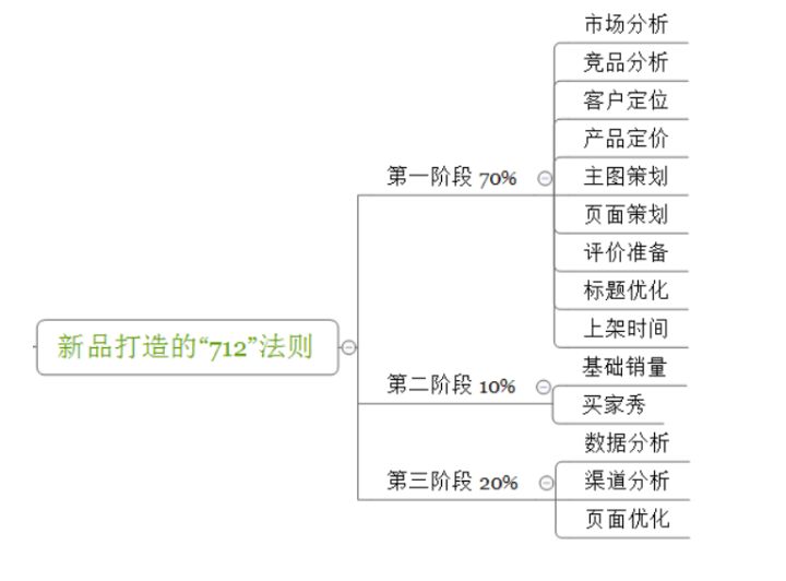 这张图大家应该不陌生了,把新品打造分成三个阶段,第一阶段占了百分之七十的工作量,第二阶段占了百分之十,第三个阶段占了百分之二十。