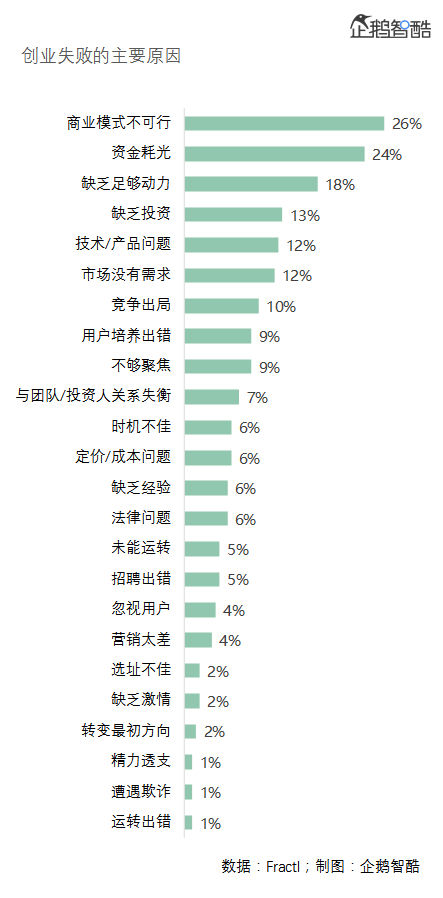 我们公司接触过很多创业者,现在这些人有的成功有的失败。成功原因就那几个,但失败的原因却有很多,就像 @企鹅智酷 之前发的企业失败的原因: