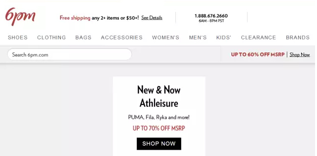 3、6PM官网:美国的B2C购物网站,是海外购物达人们公认的便宜购物网站