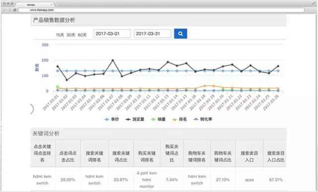关键词流量入口,产品信息,单价,浏览量,销量,排名,转化率这些数据通通展示!
