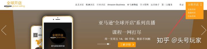 自注册请点击亚马逊全球开店官网:亚马逊全球开店|全球跨境出口电商、外贸电子商务服务平台 – 亚马逊中国,然后点击右上角选择要入驻的站点就可以进入店铺的申请流程了