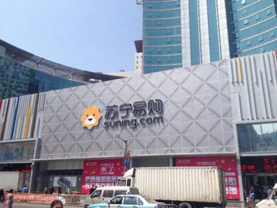 (上)、(下)两张图片,一个是苏宁易购的大门店,以前就做苏宁电器,现在已经改了,所以说苏宁一二三四五六城市首先在战略上是统一了。