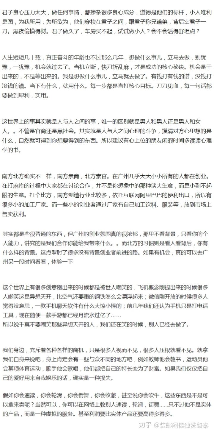 我亲自经历过很多,也看了很多身边朋友的例子总结出来的。如果换成量词,也就是说黑sè或许可以帮你赚到100万,但是绝对不可能帮你赚到一个亿。 这点我深有体会,当时做了那么多,赚的也不少。到最后依然没成功。还是diao儿郎当的。这当中有没有什么规则我不清楚。也没法去揣摩那一丝虚无的命。但是这确实是我最后的理解。所以说,给大家的提议是,你可以做,赚点第一桶金,但是不要想着依靠他发家,可能性不大。毕竟是法律不允许的,他不会容忍你做大的。