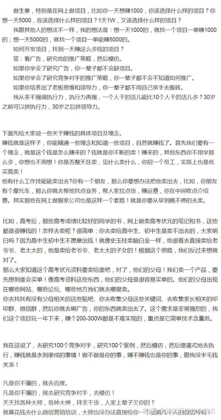 目测整个互联网,他们都在强调項目有多重要!天天说做这个項目挣了多少前,做那个項目又挣了多少銭。去他,娘的蛋吧!