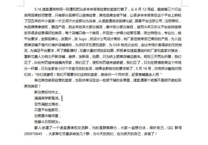 关于此次严苛的速卖通新规,联合起草这份诉求的卖家们认为:
