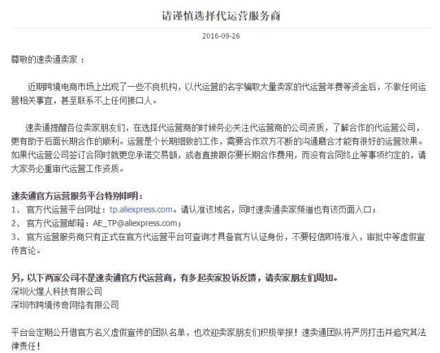 如有代运营需要,请选择官方认可的代运营商,从速卖通官网进入,不要相信其他入口。