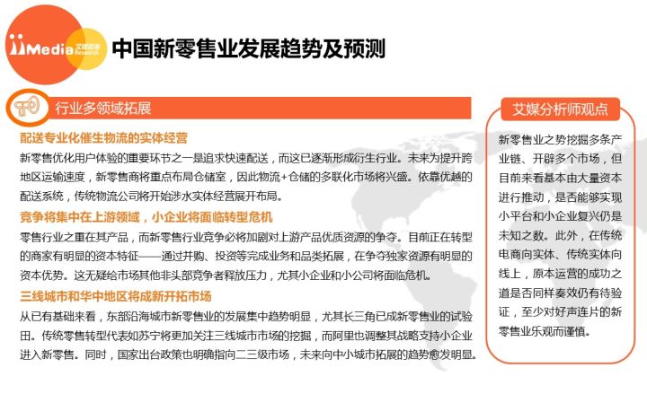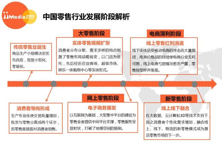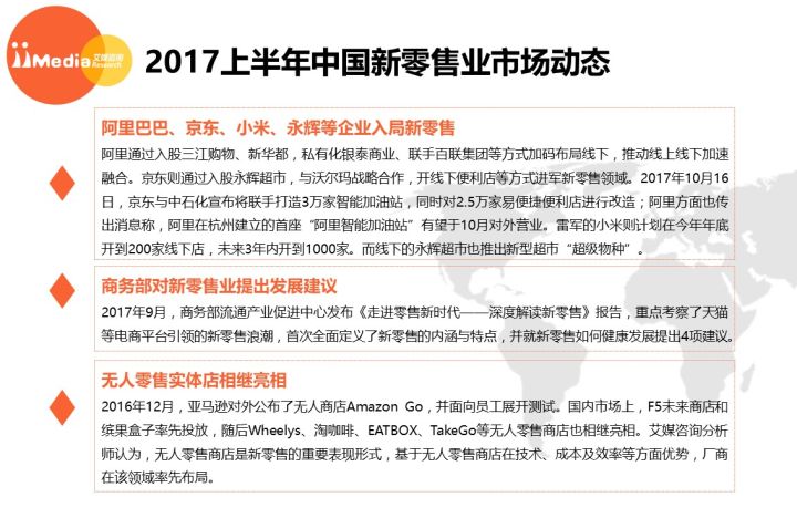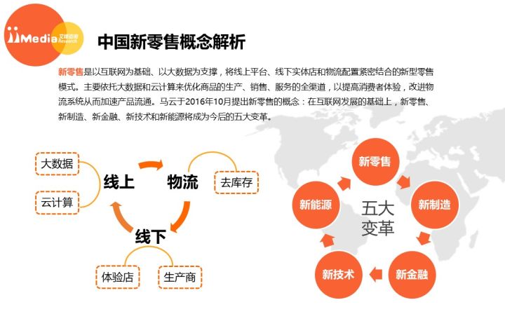 iiMedia Research(艾媒咨询)发布的《2017年中国新零售行业白皮书》,里面对新零售进行了解析,报告指出新零售是以互联网为基础、以大数据为支撑,将线上平台、线下实体店和物流配置紧密结合的新型零售模式。下面我们通过报告一起来了解一下新零售行业吧!