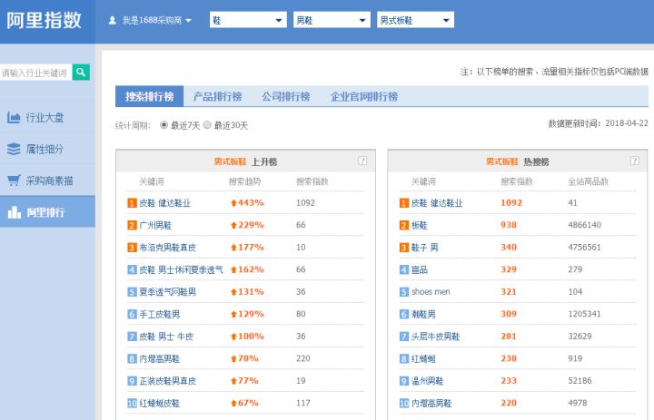 淘宝日常类目标题关键词搜索热度,产品上升下降幅度,各个区域的热门类目排行、搜索词排行、买家概况等,都可以从中通过看到。