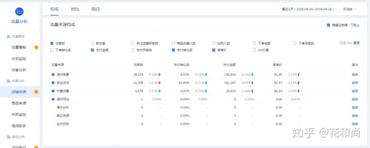 主要流量入口分别是淘内免费,付费免费,自主访问,淘外流量,其他,站外投放6个