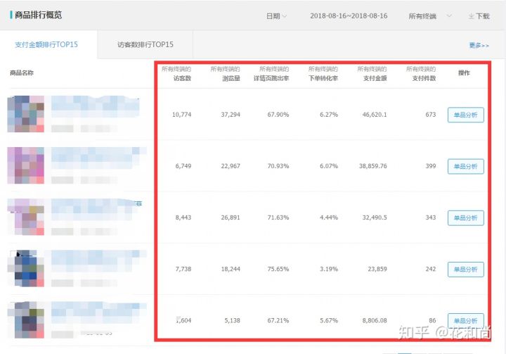 请看生意参谋——商品效果——商品来源去向Top15,分析流量去向,