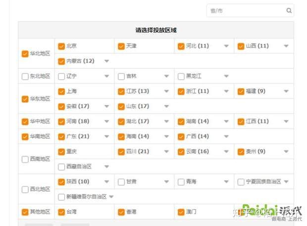 投放地域的精准化,这个也是重中之重,为何呢,因为地域不仅仅是会影响到一个点击率的高低也是会影响到一个转化率的效果。(插一句话,我这里有一些必备的表格,需要的可以看文章最后我的介绍,有获取方式)。不同的产品对于不同的地区消费者喜好度是不一样的,例如 羽绒服,如果10月份你选择广州,上海等地区,那投放肯定是无效的,投放山西,陕西,等位置肯定是收效甚微的,投放东北部分区域,效果肯定更加,因此,应该针对产品本身去研究圈点出各个省份点击与转化最高的城市去投放。根据后台数据消费者地域分布来调整直通车地域投放。