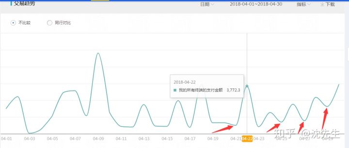 可以看到尽管有千人千面的影响,整体上销量还是呈上升趋势。当然今天跟昨天销量是下降,至于原因嘛。