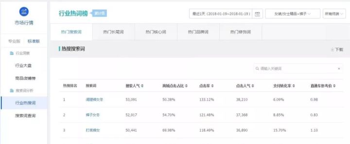 我们确定好了自己的款,然后就要开始找关键词,关键词主要找到我们的飙升词。如何去寻找我们的关键词?这个时候我们需要借助下我们生意参谋里面的市场行情或者名不虚传,这两个找词的软件都是需要订购的,但是这个钱花的是值得的,市场行情要贵一些,名不虚传要便宜一些,在服务市场可以订购,通过找到最近上升情况好的词,在搜索数据和竞争数据都综合衡量不错的情况下找到目标词,进行我们标题的组合。我们的新品一开始没有销量,能够提高我们点击率的主要是提高我们的产品图片,已经价格性价比高。