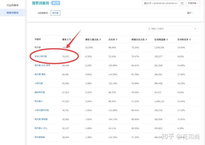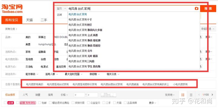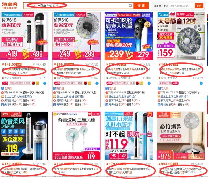 比如说我们搜索这样一个关键词“电风扇 台式 家用”