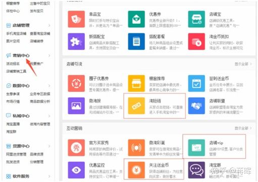 营销中心:卖家中心左侧边栏,综合官方营销小工具。(如下图↓)