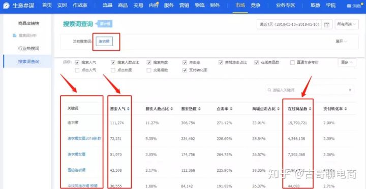 光是知道一点数据是远远不够的,根本不符合我的个性。正如上面这张图表所示,我今天教给大家的这堂课,就是可以分单品,分关键词来查看快选平台的数据。那究竟可以查看到什么方面的内容呢?接下来,我一一简单介绍一下。