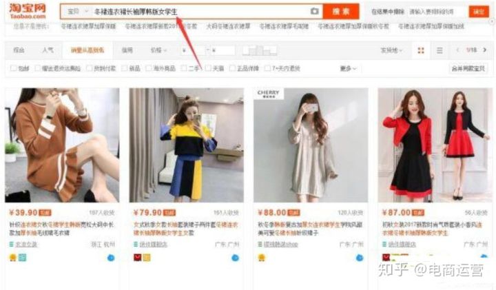 淘宝搜索选款要根据人气排序。给大家解释一下为什么要用人气排序而不是用销量排序。因为销量可能是有多种渠道组合起来的销量(比如:活动做起来的,或者淘宝客做起来的,或者说是做直播做起来的,或者是靠前期低价促销做起来的,或者是粉丝店铺靠老客户做起来的)所以说销量排序,不能说明这是潜力款。用人气排序,目的是找到大众喜欢的产品款式。