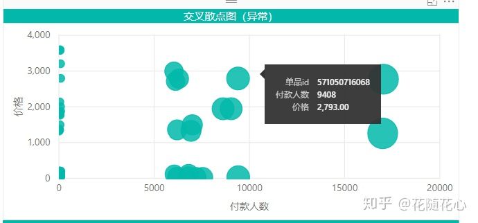 交叉散点图,我刻意做了2个部分,上面的意思是说,大部分产品基本落在什么价格区间和销量区间上,知道要进入快选平台,基本上从价格和销量要如何把控。
