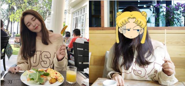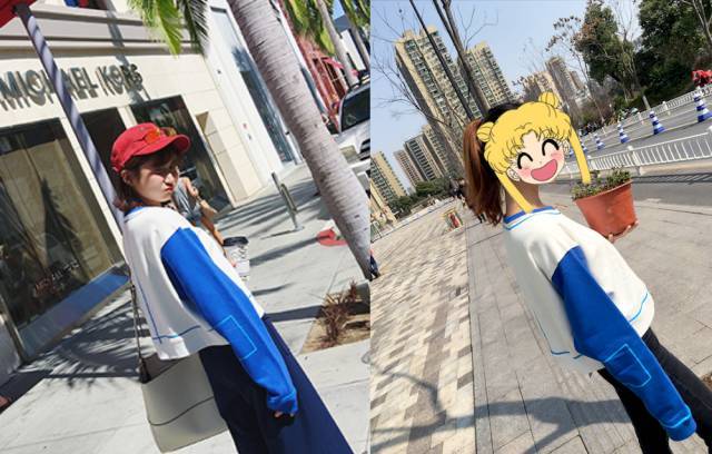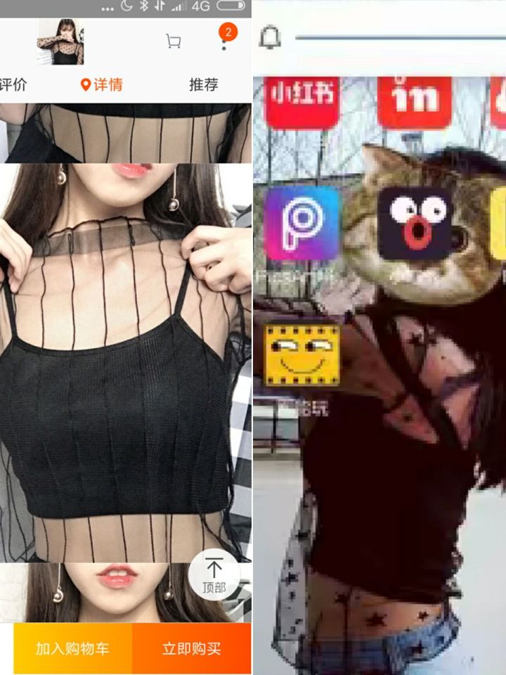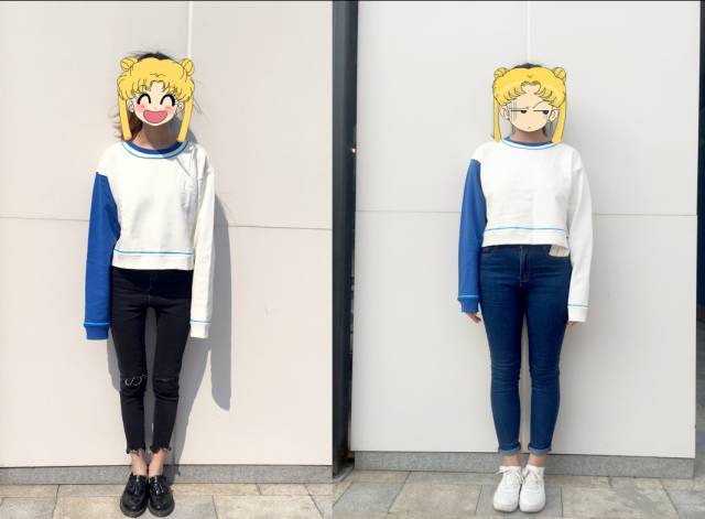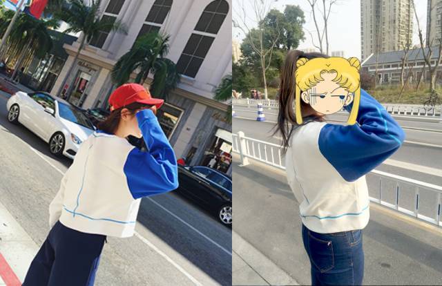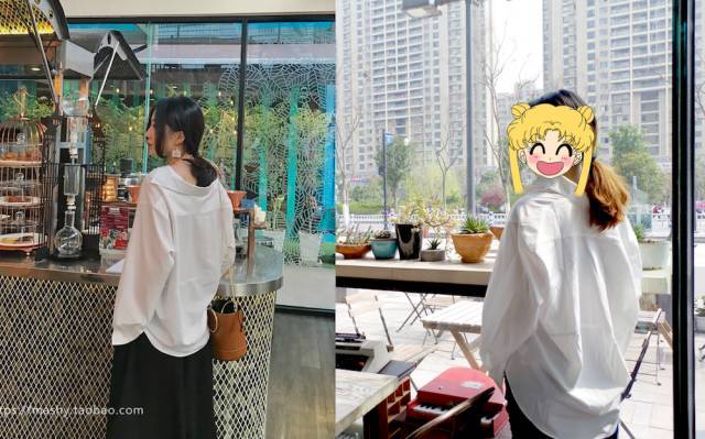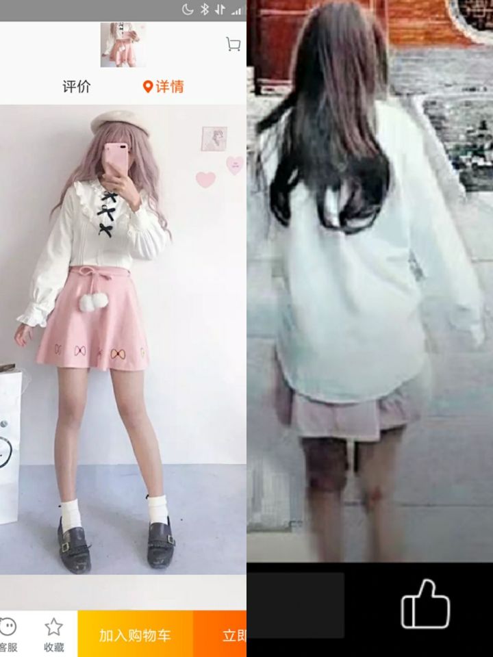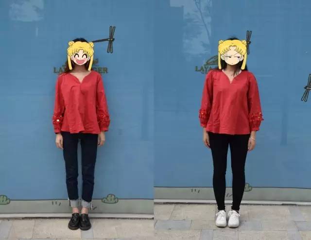 当当当,我亲自实验给你们上一组对比图,答案这么多了,不知道你们还能看到我的不,本来想只发我的穿衣效果,但是仔细想想,只发我的就没有对比,所以我就找到了模特图进行对比,以下拼图,左边是模特,右边是我,这是我在网上买的衣服。。我感觉没有模特穿的好看,但是我觉得还可以,我特意找的全身全身都是淘宝上的衣服来拍的