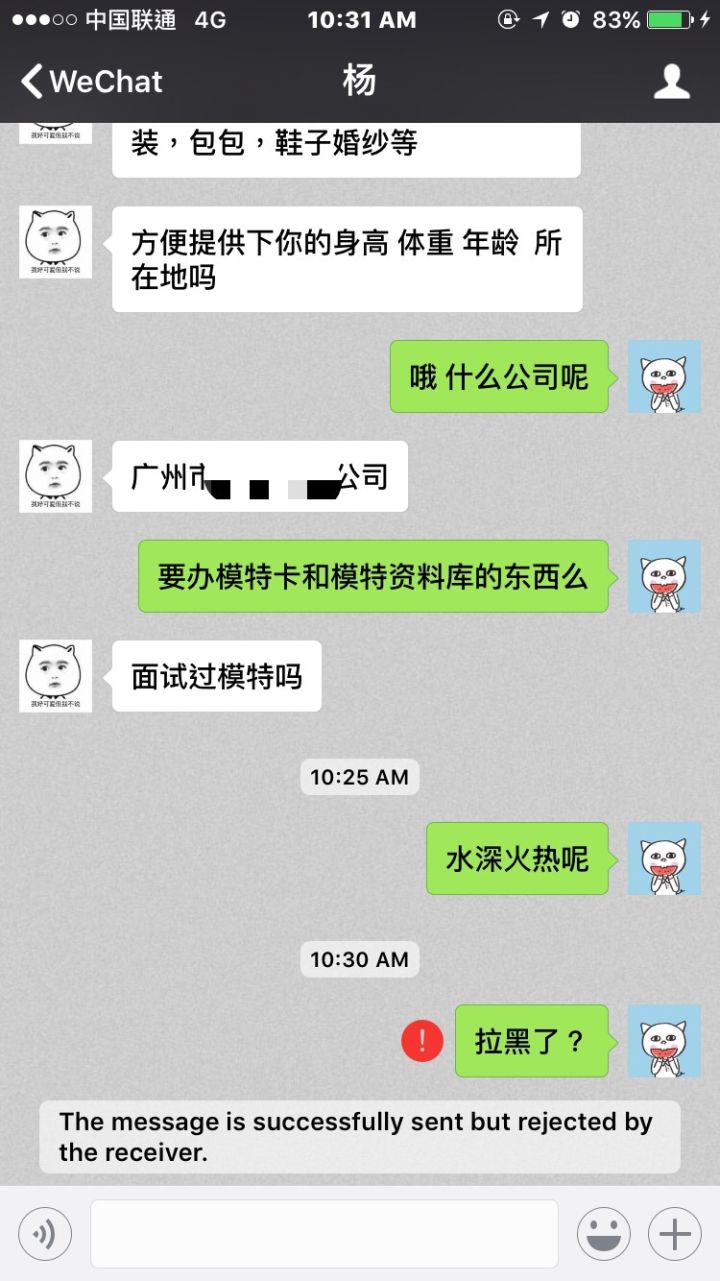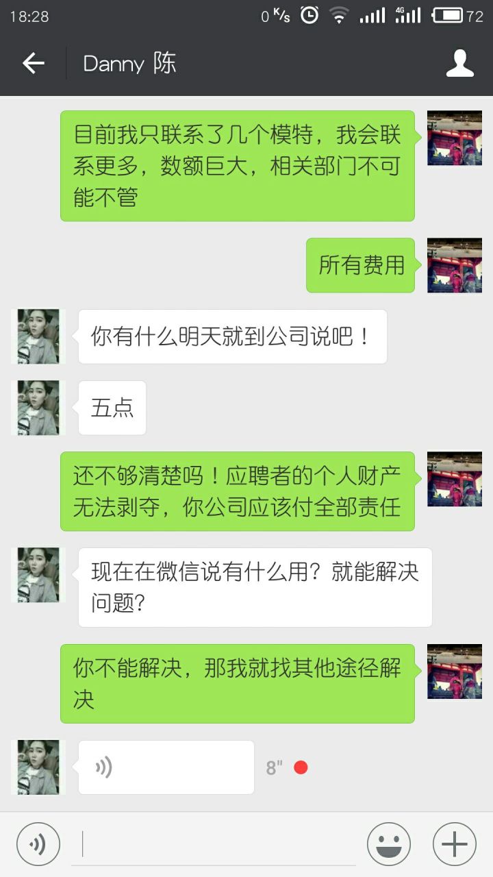 幸亏我朋友以剽悍著称,见不得这种事,马上接过微信就和我经理开战,冒充是我女朋友,大骂一通,(结果证明是极其奏效的)