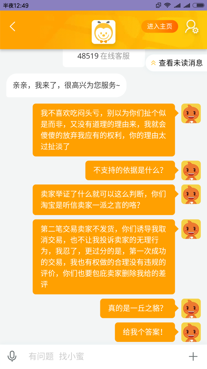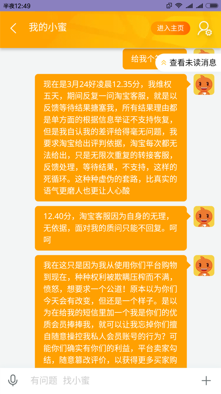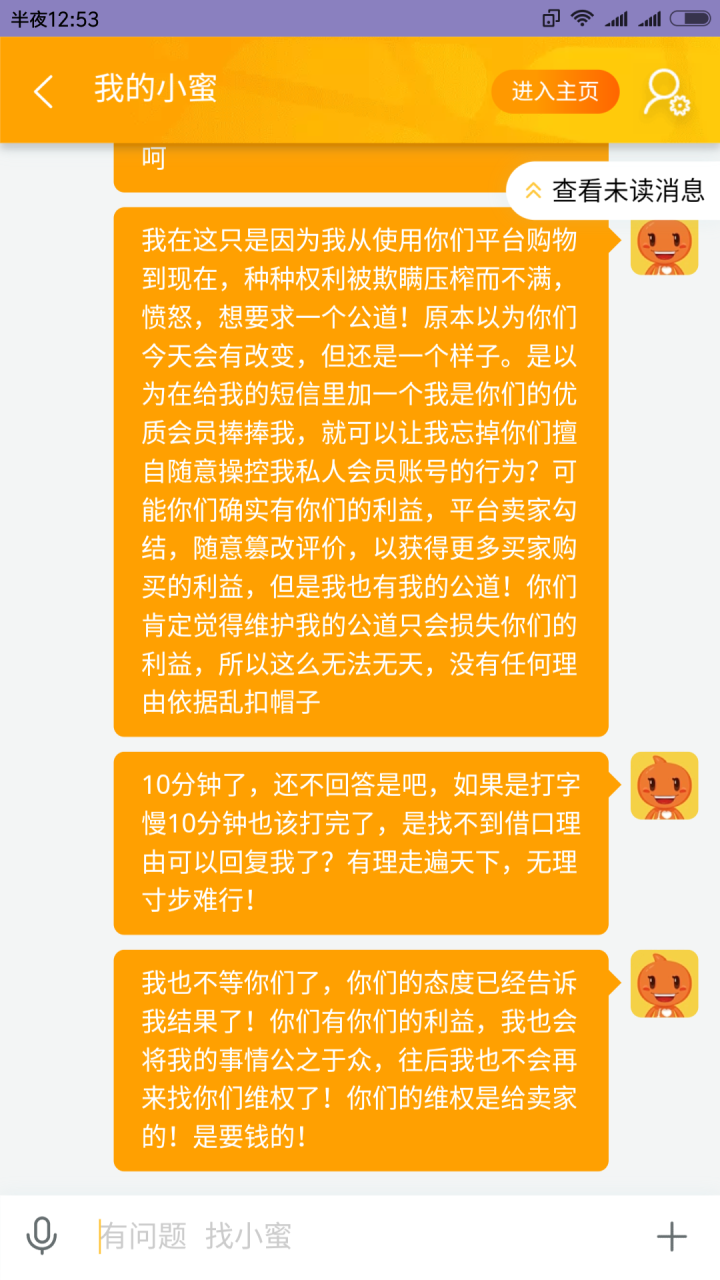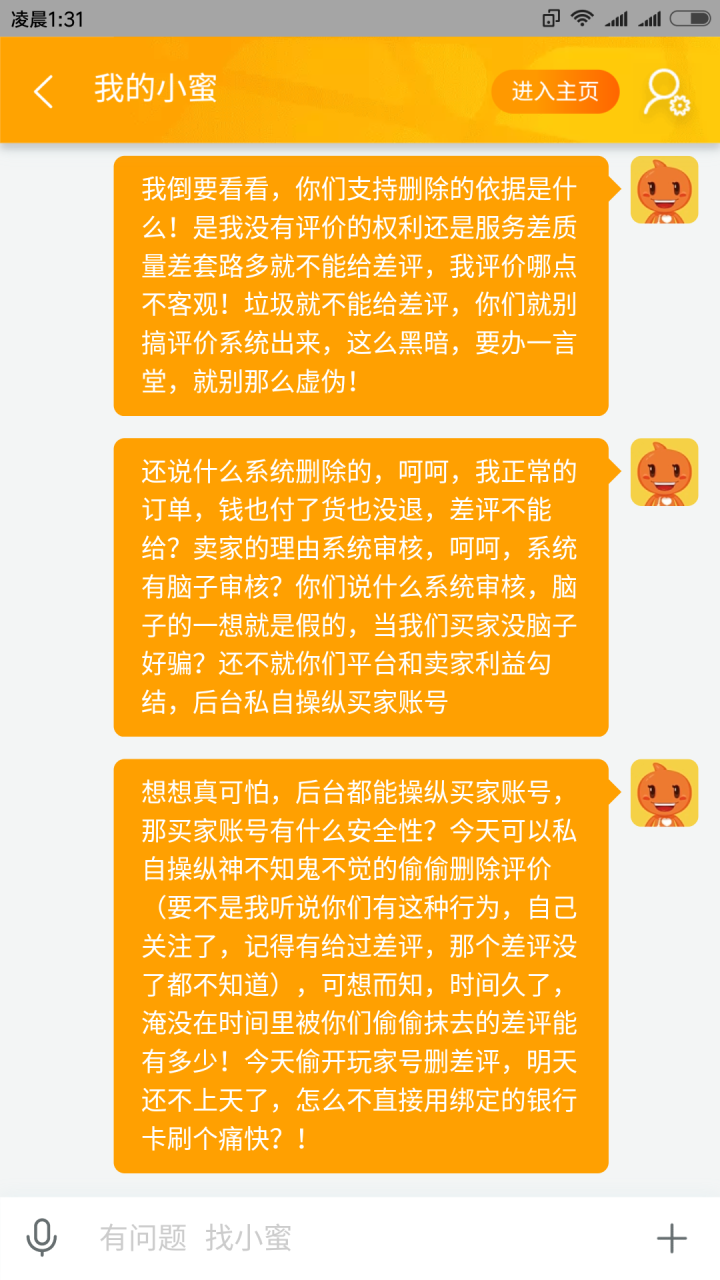 也就是从此,陷入了一个淘宝的套路,这么多天以来,它们像是牵牛一样,把我牵着跑,所有结果都是不支持我恢复差评。直到今天,我才懂得,我触犯到了他们的利益,恢复是不可能的,而他们也因为这事没有道理,词穷不敢再回复我。