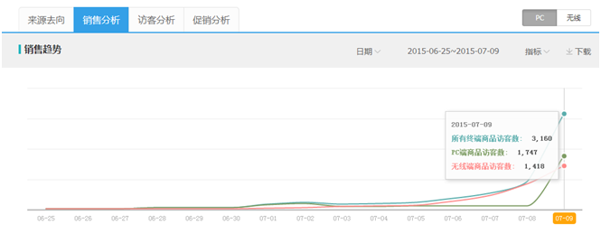 经过细致的分析,无线端的收藏、购物车的权重远远超过PC端。