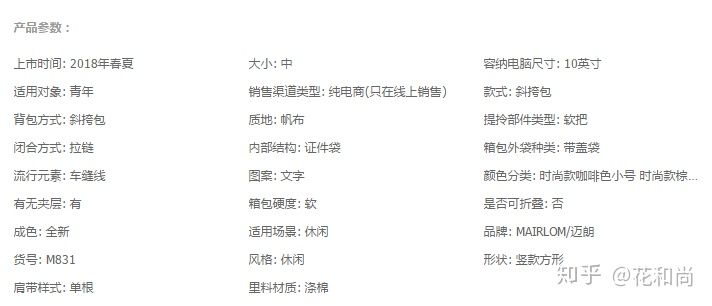 首先我们要优化宝贝类目,如果你发布新品的时候连类目都划分错了,那么在搜索流量中你连最基本的入门资格都丢失了。其次要我们在发布宝贝的时候,一定要把我们的商品属性填写完整,例如这款帆布包,它所对应的产品参数就很准确,顾客搜索产品的方式多种多样,如果想从几百万的竞争产品中缩小竞争力,那么我们尽量给自己的宝贝填写准确的属性,就像这款帆布包,竞争宝贝有200多万,你可能没机会,但如果顾客在搜索条件处又勾选了风格为“休闲”,元素为“商务”“户外”等,竞争宝贝只剩10000件,大大的提高了自然搜索率。属性填写准确,接下来使我们的商品价格选择,在这里花哥提醒各位新手朋友,宝贝价格是会对我们产品的权重产生很大的影响的,定价前一定要分析好市场同类竞品价格区间,做好商品的价格定位,一定不要频繁修改商品最终销售价,特别不要大起大落,会很影响宝贝标签。