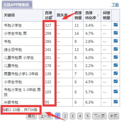 每个单品下都挂靠着很多的关键词。当你每一个关键词都具备相应的“权重”时,都会给你带来相应的流量,如下图。我某个店铺的其中一款产品,每页十条。共734页,很容易可以得出这款单品有7340个引流词,多的可以引来三百多个访客,少的也能引来一两个访客。