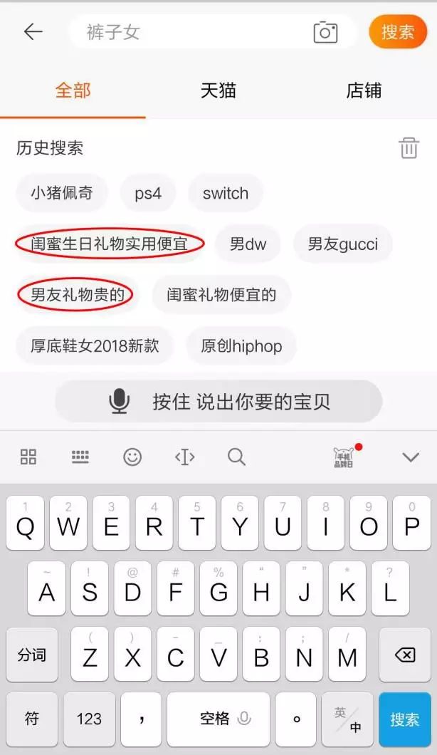 搜索引擎会根据你最近浏览的产品和购买的产品分析你的性格,比如我经常浏览女性用品,当我在搜索“牛仔裤”这类中性词的时候,展示的宝贝基本都是女性牛仔裤,而非男性牛仔裤。