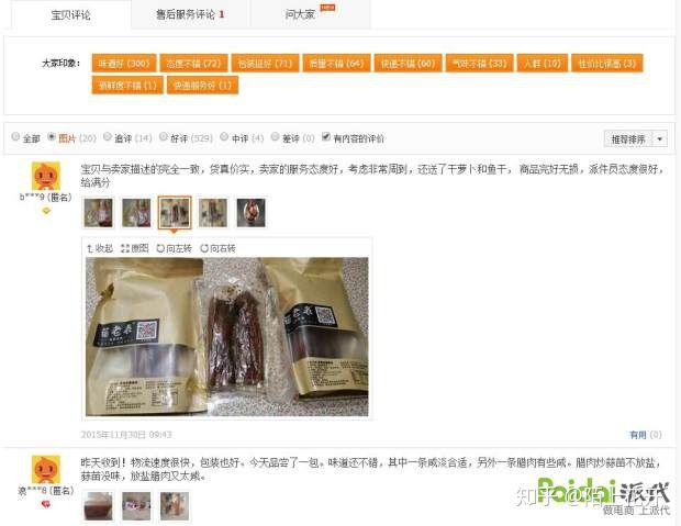 图评和追评在评论中也是相当重要的,因为买家会重点去看,图评和追评里要重点放一些有料的软文和图片,在图评里的图评相当于另一个详情页面,不能P,一定要真实,并根据自己产品的特点上图,比如母婴类目的上小孩拿着产品的图片,食品类上炒好的菜,或者一起开心吃东西的图片,这些非常重要。另外注意有料的评价,有内容评价和没有内容评价比例,要符合真实性,不要让别人一眼就看出是刷出来的,尽量将有料评价配图评放到显眼位置就是了。