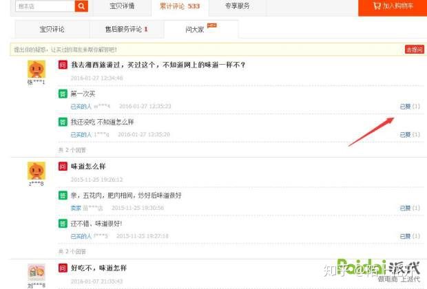 问大家:这个也是新出的功能,这可是完全的买卖家互动了,一定要抓住,只要产品过硬,刷个几屏是没问题的,产品有问题的就别刷这个了,万一来个差的评价得不偿失,新店都是刷手刷的可以尽情的刷,反正都是刷手回答,但是注意买家提问了,其他买家回答的同时卖家也要回答,才能形成互动,另外旁边的已赞选项要多赞几个,证明宝贝人气旺,像个论坛一样,别人才会跟风购买。