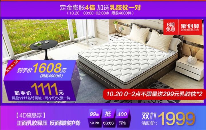 家里在装修,所以早早就瞄上了淘宝的双十一,喜临门在首页的广告打得很响亮,价格很诱人,我立马入坑:
