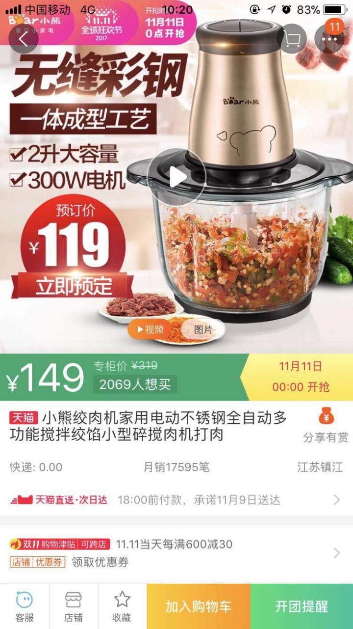我之前149给我妈买了一绞菜机,我妈朋友看上了叫我帮忙再买一个。我就上去看,发现界面是这样的