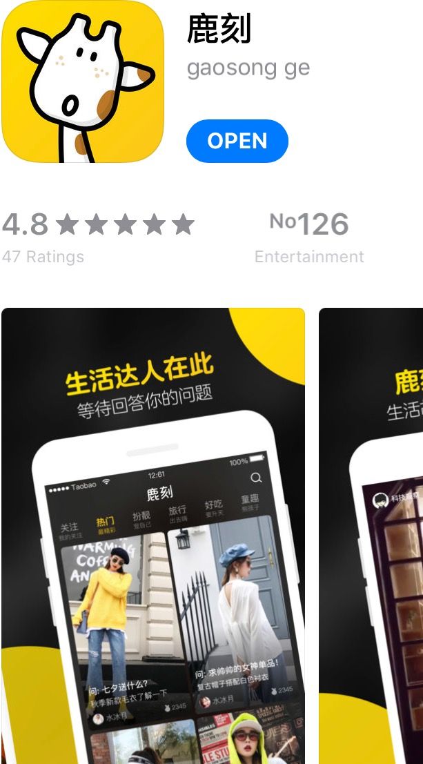 体验了淘宝的鹿刻,基本就是用知乎的产品思路,做了一个视频版淘宝