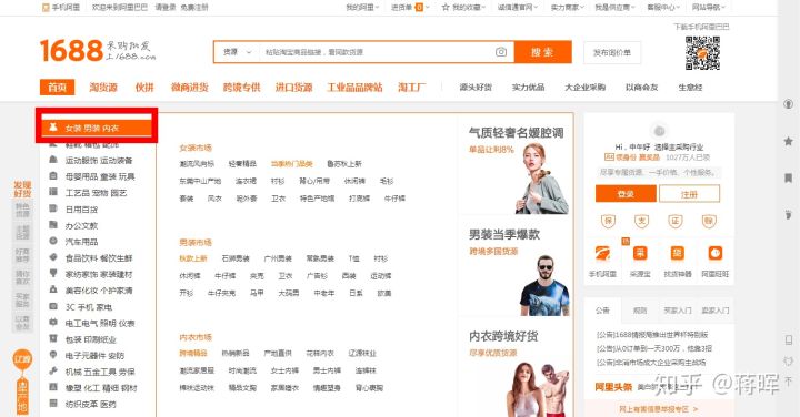题主想找女装类的货源,可以打开阿里巴巴官网:
