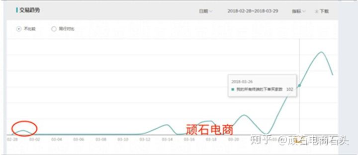 我们可以看下时间,我们在16号开始操作,然后图上显示的是,16-18号这三天,均下来每天1100的uv,但是由于转化才0.6%,所以我们的店铺并没有起飞。