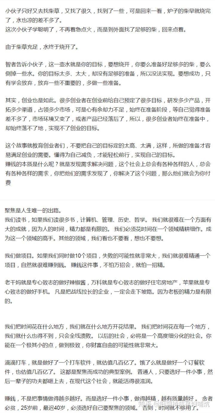 只是没有多少人会坚持下去的,人性就是这样,要么就是喜欢换项目,要么就是绝望,认为不可能赚钱,就放弃了,要么去打工,要么去借信用卡,要么去啃老。所以赚到大钱的只是少数,少有人坚持,善始者实繁 ,克终者盖寡