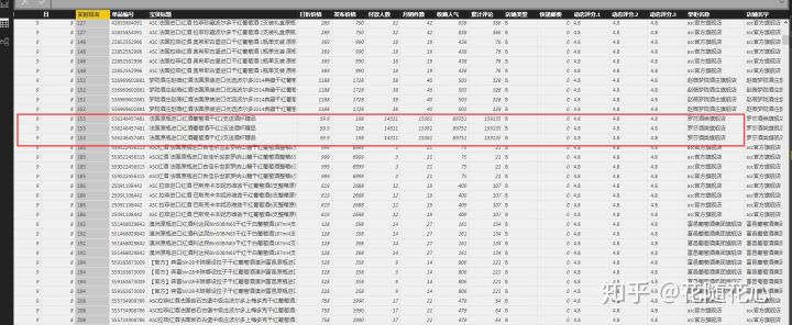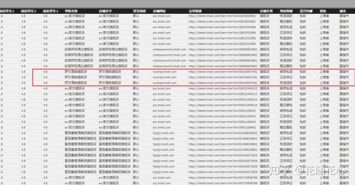 以上数据,我获取的是无线端前20页的综合排序数据,因此也可以看出综合排序的一些规则。当然,我忘了讲,这是红酒这个关键词的数据。