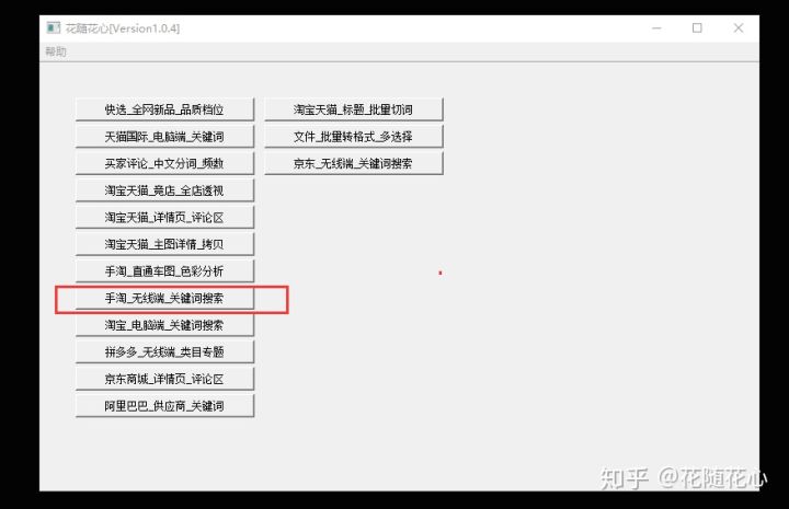 关于这次数据获取的方法,实际上是我自己写的数据分析工具箱当中的其中一项功能,可以获取手淘无线端的数据,默认有4种排序结果,分别包括综合、销量、价格和信誉,如图所示