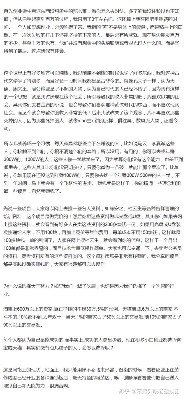 不愿意丢掉一个月工资,就不能增长自己的见识,不能增长自己的阅历,就不能快速的当老板。