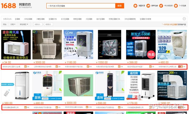 首先打开阿里巴巴首页,输入 “ 空调扇一件代发 ”或者“空调扇代理”,然后在后边自动出现的关键词里面,选择一个自己认为匹配度最大最合适的就可以了,点击搜索,和淘宝一样,会出现很多代理商