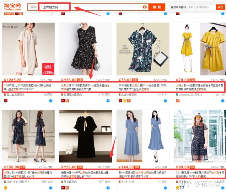 可以看到,展现出来的宝贝标题里都包含了这些词“连衣裙”“大码”。如果说你标题里没有这些词,那么是很难被展现出来的。