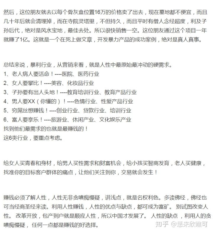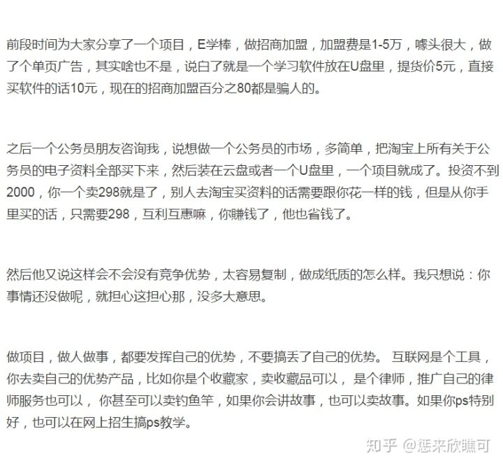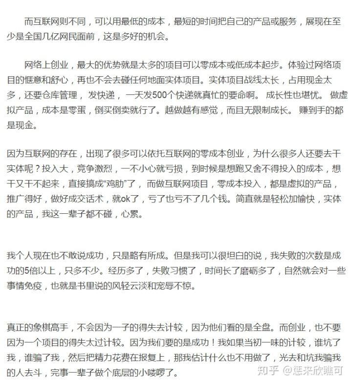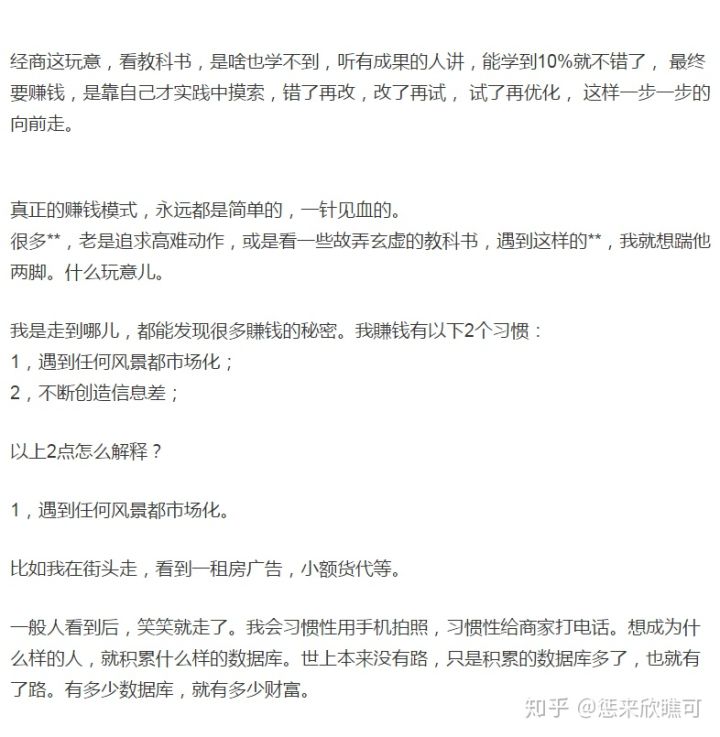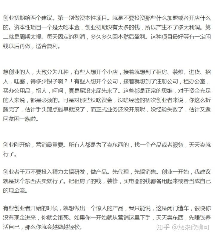 我感觉到,他希望从我这里得到对他一个人花费了大量心血做出来的计划肯定和赞许。但我给他说:非常抱歉,在你的计划里,我看到的是创新,创新,再创新,却没有看到一点点更现实的复制。一个真正聪明的创业者,是只要找到一个赚钱的业务了,就会在这个业务上不断深挖。