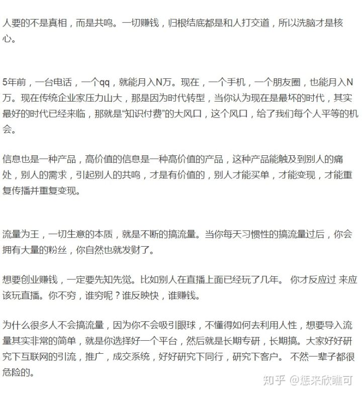 目标人群:大学生、全职妈妈,先是打感情牌聊生活啊学业啊对社会的看法之类,然后说淘宝客怎么做啊,最后开始步入正轨说做淘宝特别容易不用囤货,一键分销(这个分销软件淘宝有卖一块钱一年),关键来了他们软件卖一千八,最主要的是根本没用啊,还不如一块钱包年的甩手铺货好用,需要分销的小伙伴不要信什么1688软件了,自己琢磨一下少踩好多坑。