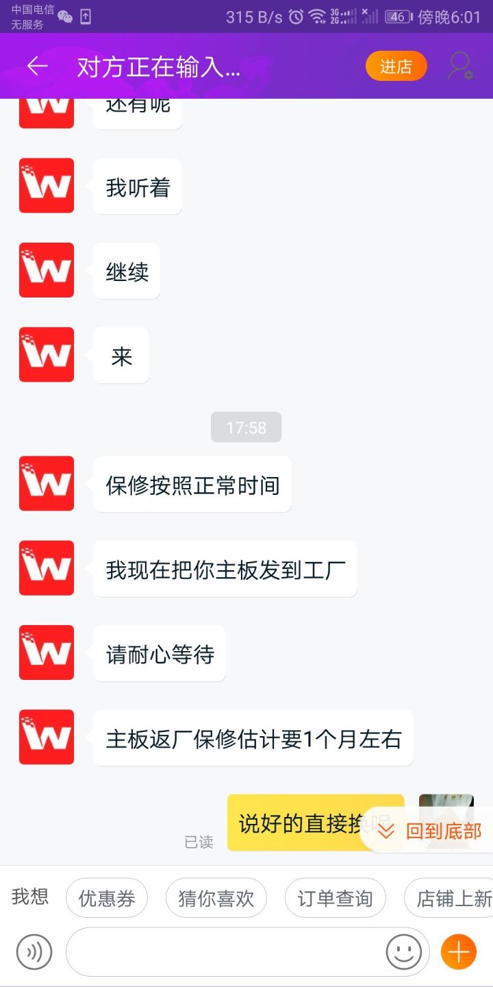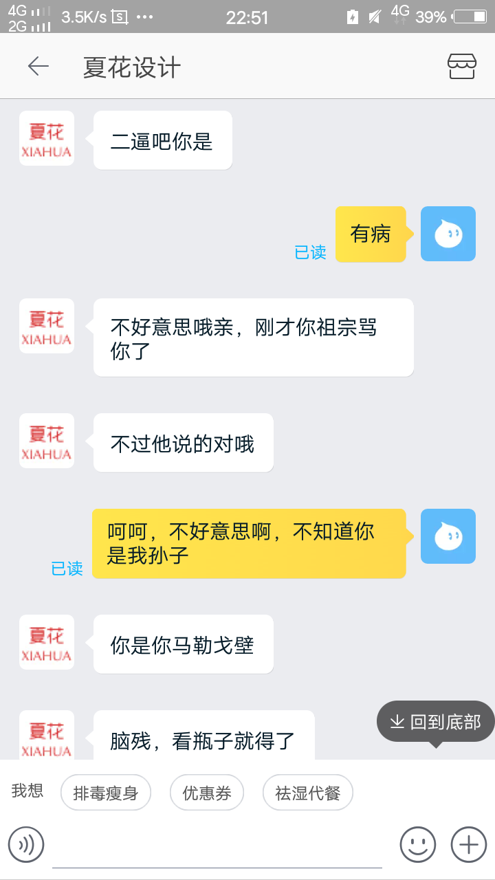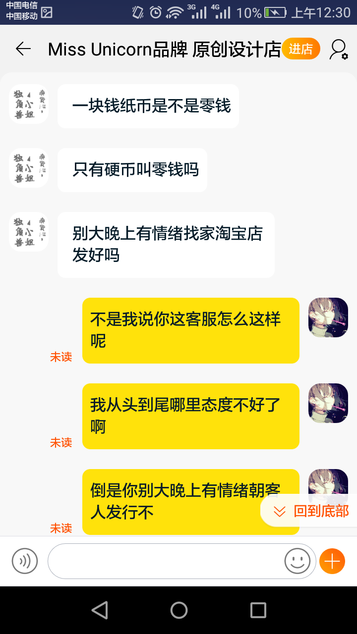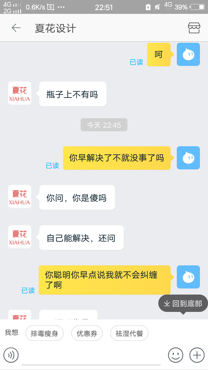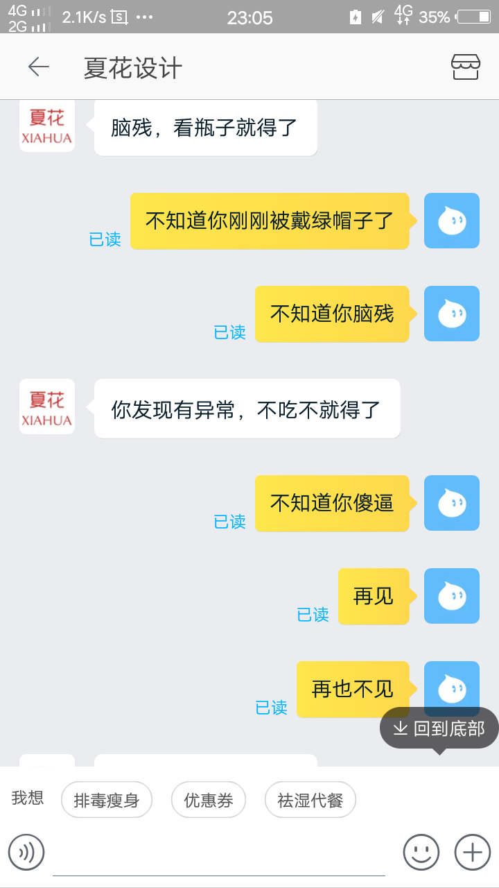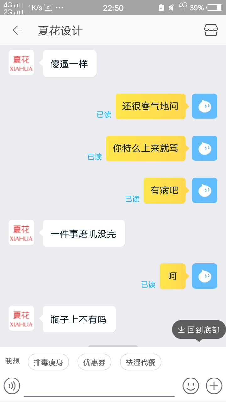 后面我说的内容就全部未读,感觉就是骂我一顿过瘾就走,完全就是在消遣客人,真是让我不能更恶心。
