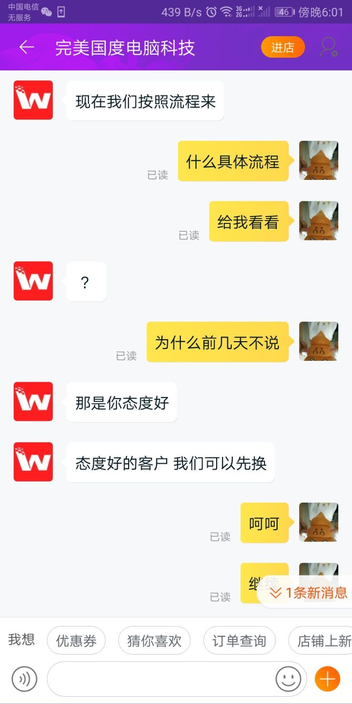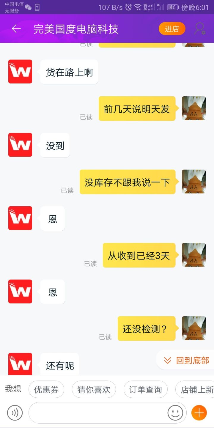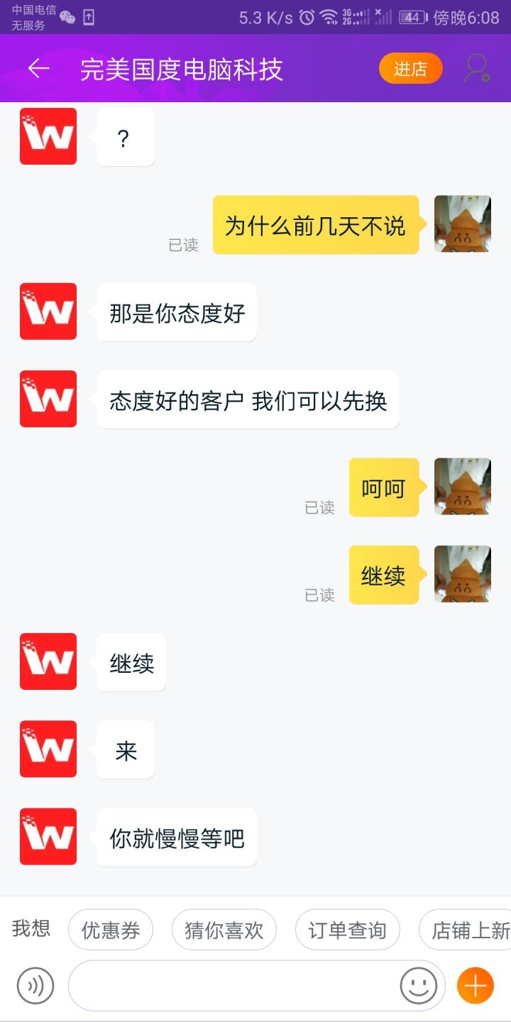 在今天下午真正碰见了最差淘宝客服。