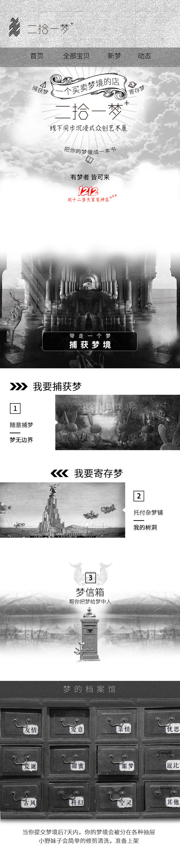 一个叫“二拾一梦”的店铺。可以寄存梦和买梦。还可以把你的梦做成壁纸、艺术画作、书籍,或者线下的展览。长这样。