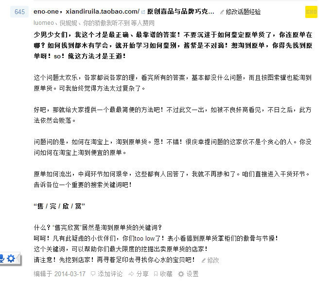 在今年2月份,我回答了一个问题:怎么在淘宝上淘到原单货?